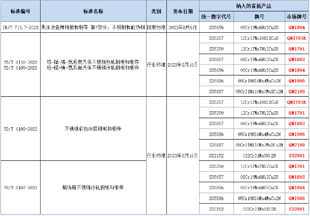 全球QN系列不锈钢新产品迈入国标及多项行标